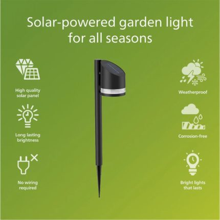 Illuminate your garden, pathways, and outdoor spaces sustainably with the Philips FYVE Solar Pedestal Light. Designed with an energy-efficient 1.5W solar-powered LED, it delivers a warm 2700K glow and up to 8 hours of illumination after just 4–6 hours of charging. With IP44 water resistance, a durable anti-UV plastic body, and dusk-to-dawn automation, this pedestal light combines style, efficiency, and reliability for a perfect outdoor lighting experience.