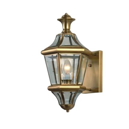 This vintage-style brass outdoor wall lantern brings timeless elegance to any home’s exterior. Its classic lantern design with clear glass