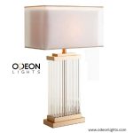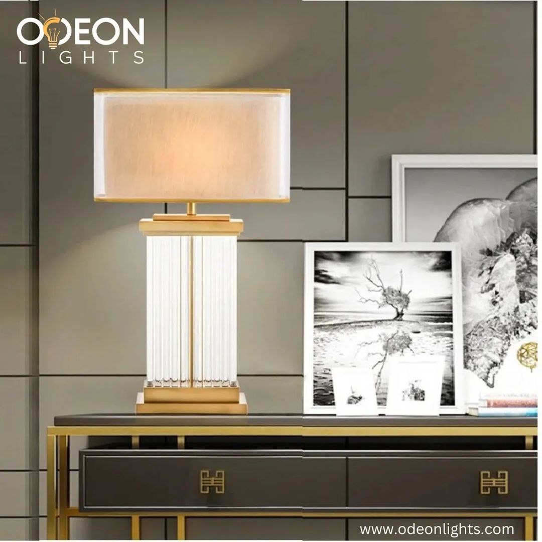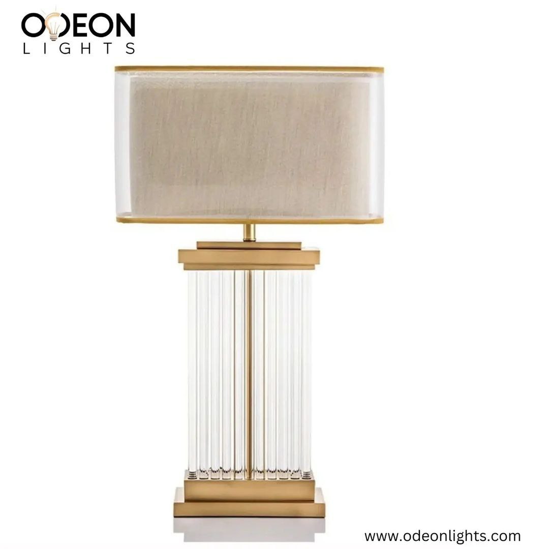 Elevate your interior with this luxurious gold and crystal column table lamp from Odeon Lights. The striking design features a stunning transparent crystal base with vertical ridges, paired with sleek gold accents that add a glamorous touch. The rectangular fabric shade, in a neutral tone, complements the sophisticated design and provides a warm, inviting light. This lamp is perfect for living rooms, bedrooms, or office spaces, offering both style and functionality to your décor.