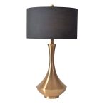 - Material: Gold-finished metal base, black fabric shade