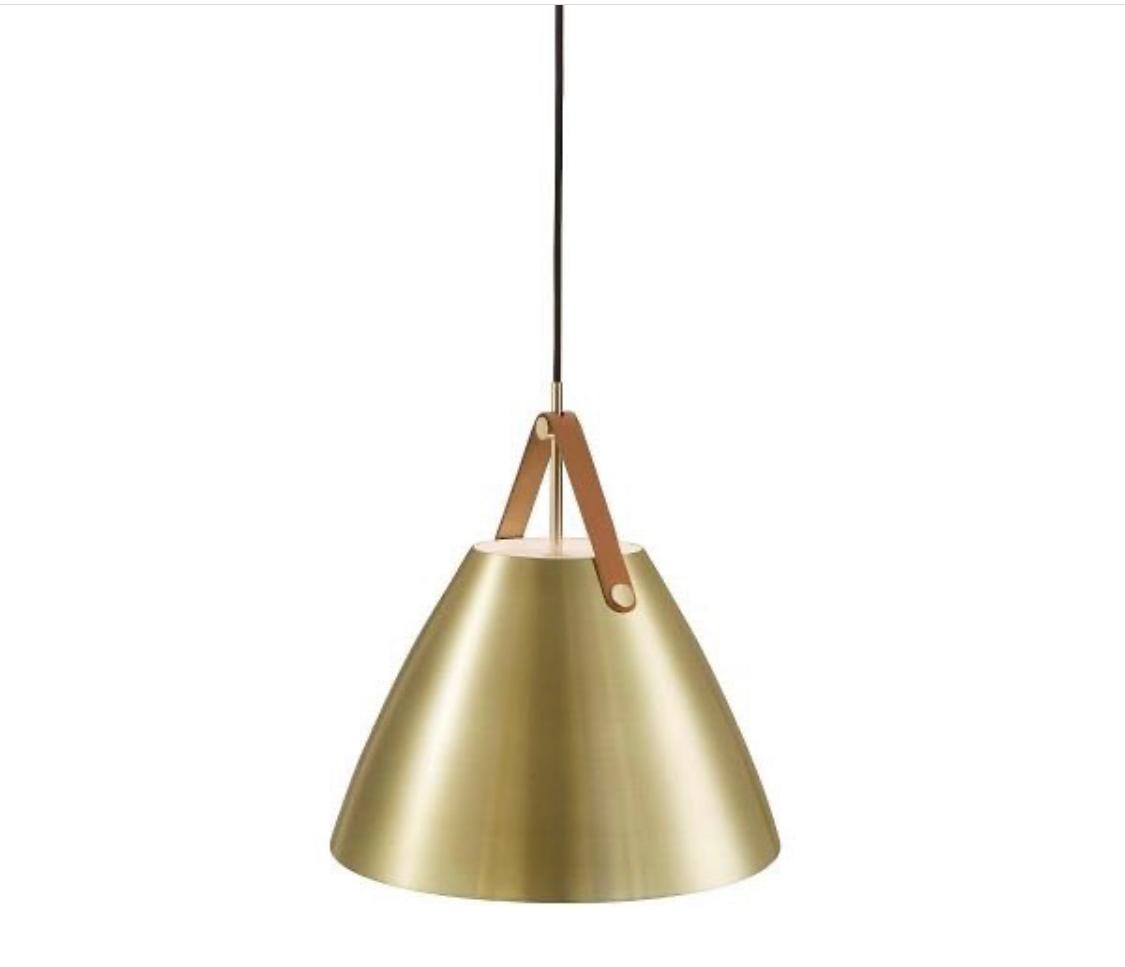 Add a touch of sophistication to your interiors with this Contemporary Brass Pendant Light. Featuring a sleek conical brass shade paired with an elegant leather strap detail, this pendant light is the perfect fusion of modern design and rustic charm. Ideal for dining areas, kitchens, or living spaces, its warm golden finish creates an inviting ambiance while serving as a striking decor statement.