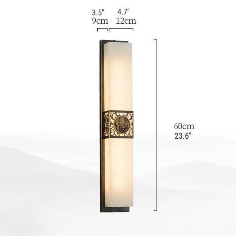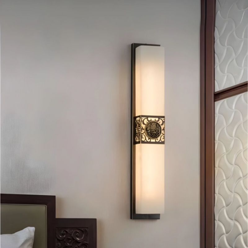 Elevate your interior decor with this exquisite decorative wall light. Featuring a slim rectangular design, the light showcases elegant frosted panels complemented by intricate metalwork detailing at its center. Perfect for creating a warm and inviting ambiance, this fixture blends functionality with artistic charm, making it a stunning addition to living spaces, hallways, or dining areas.