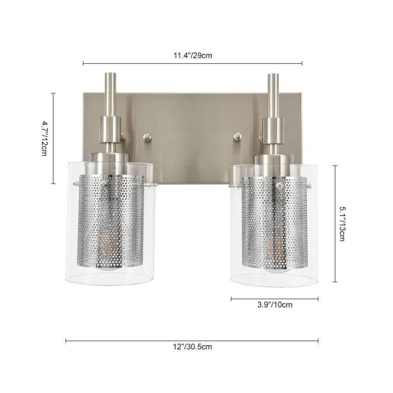 Elevate your decor with this stylish industrial-modern wall sconce. Featuring a brushed metal finish and a unique perforated metal shade within a clear glass cylinder, this sconce provides a sophisticated, layered lighting effect. Perfect for accenting hallways, bathrooms, and living spaces, this fixture combines functionality with eye-catching design, creating an ideal addition to modern or industrial-themed interiors.