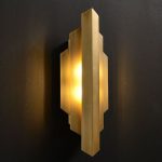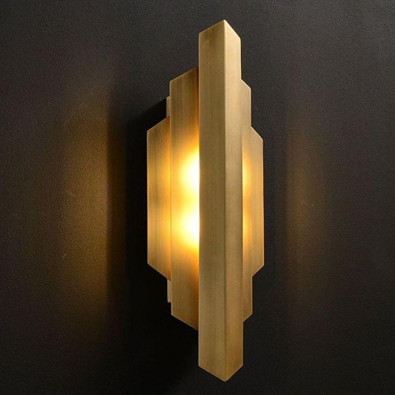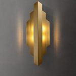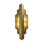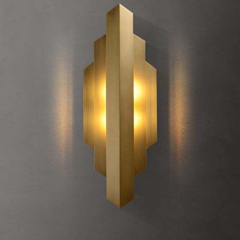 Add a luxurious glow to your space with this modern gold geometric wall sconce. Designed with clean lines and an art-deco-inspired form, this sconce emits a warm and ambient light, making it an eye-catching feature for any room. The metallic gold finish exudes sophistication, while the layered geometric panels create a unique play of light and shadow. Perfect for contemporary interiors or as a statement piece in any decor style.