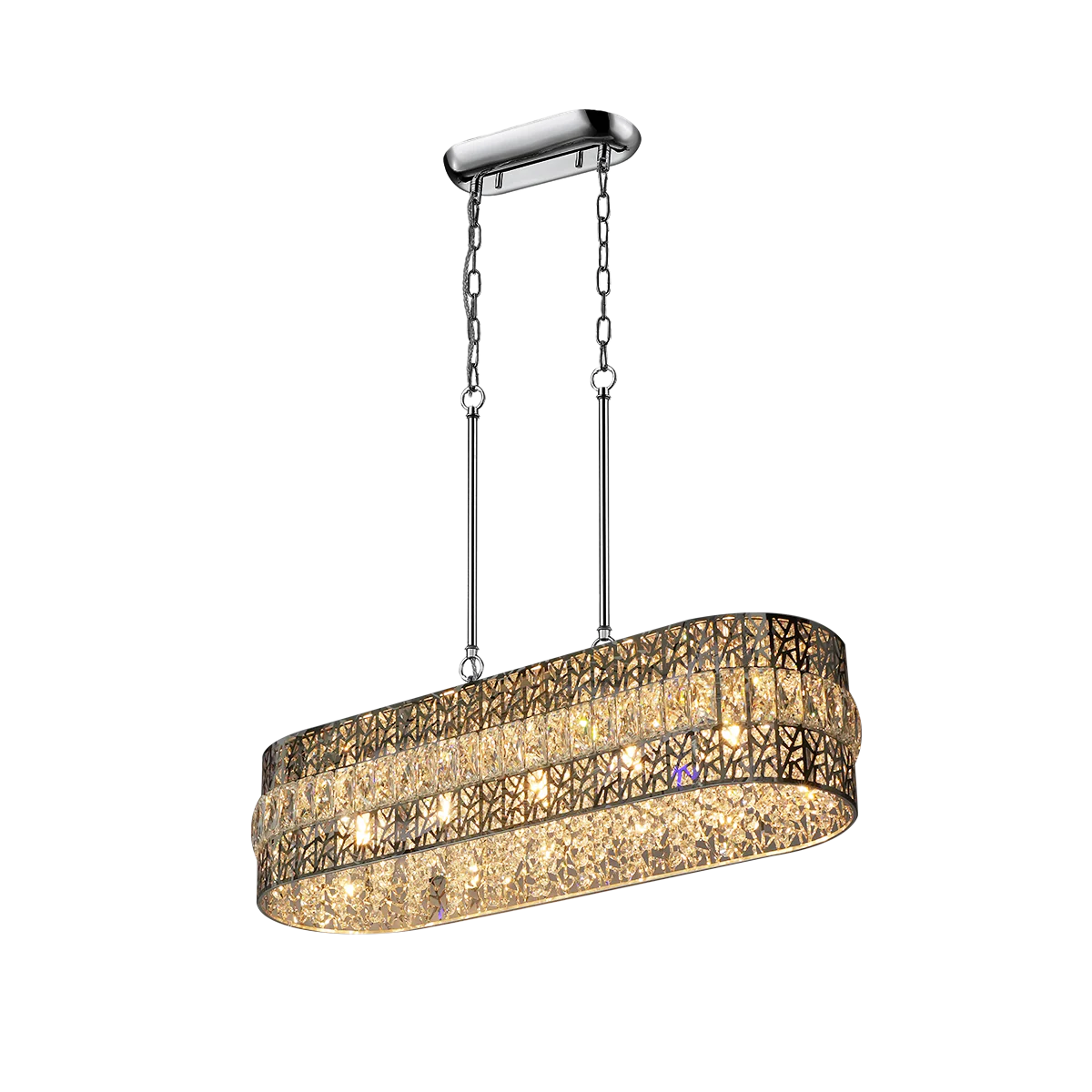 Design Choices: The Corona Pendant Light offers you the flexibility to choose between two stunning designs. The first option boasts the finest crystals in a superb chrome finish, adding a touch of timeless elegance to your home. The second choice features choicest crystals in a contemporary chrome finish, perfect for those seeking a modern and chic look.