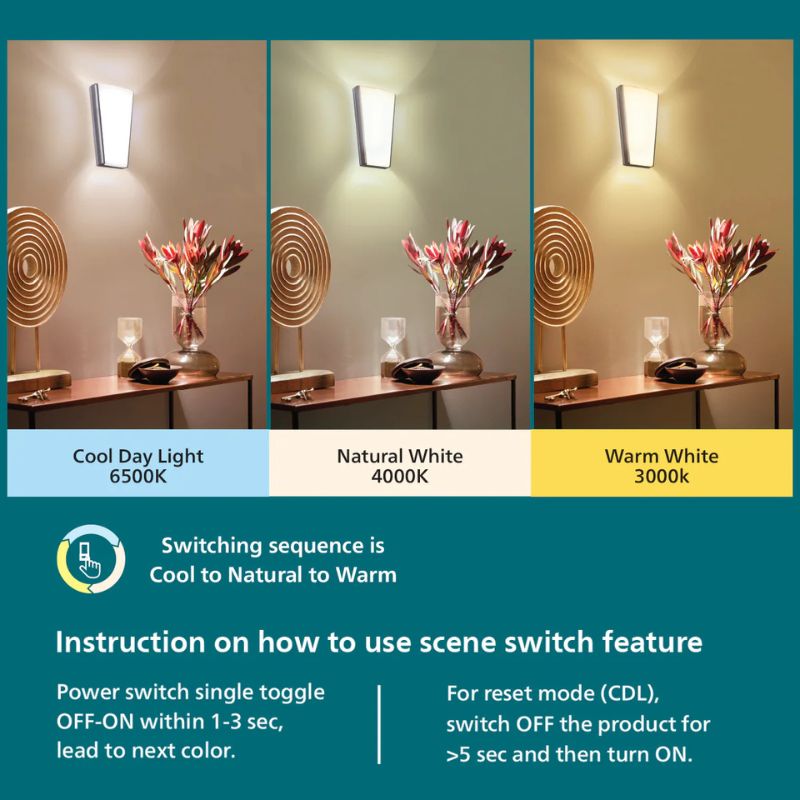 Upgrade your space with the Philips Neos Wall Light, a perfect blend of functionality and style. Featuring Tunable White technology, this wall light allows you to switch between cool white, natural white, and warm white with a simple toggle of the wall switch—customizing your ambiance effortlessly.