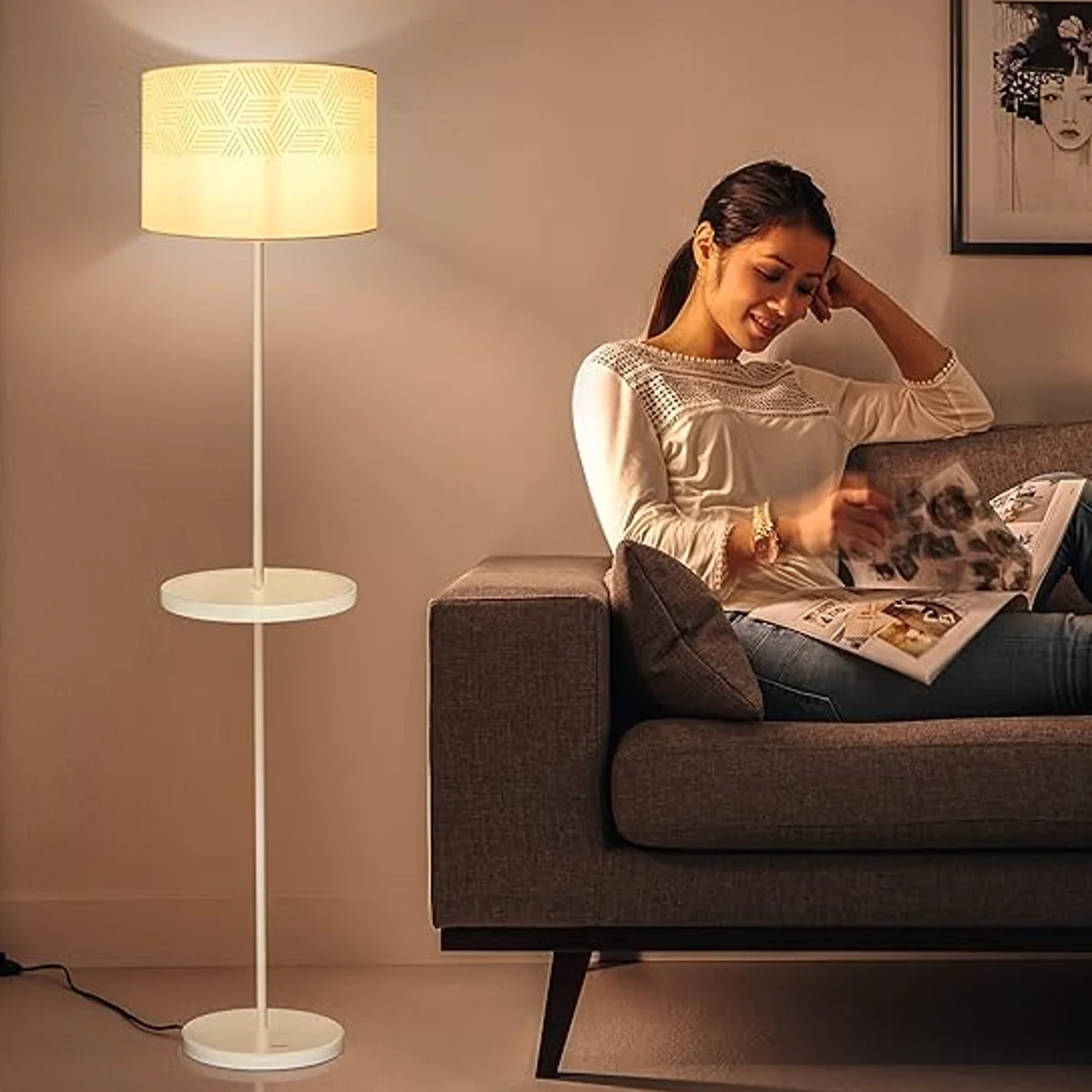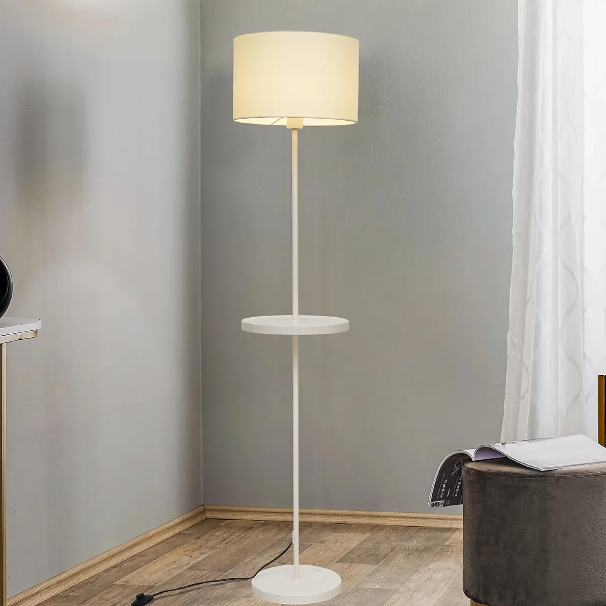 Durable Metal Body, Fabric Shade: Crafted with a sturdy metal body and a fabric shade, this floor lamp combines durability with a soft and inviting glow. The metal body ensures long-lasting quality, while the fabric shade diffuses the light beautifully.