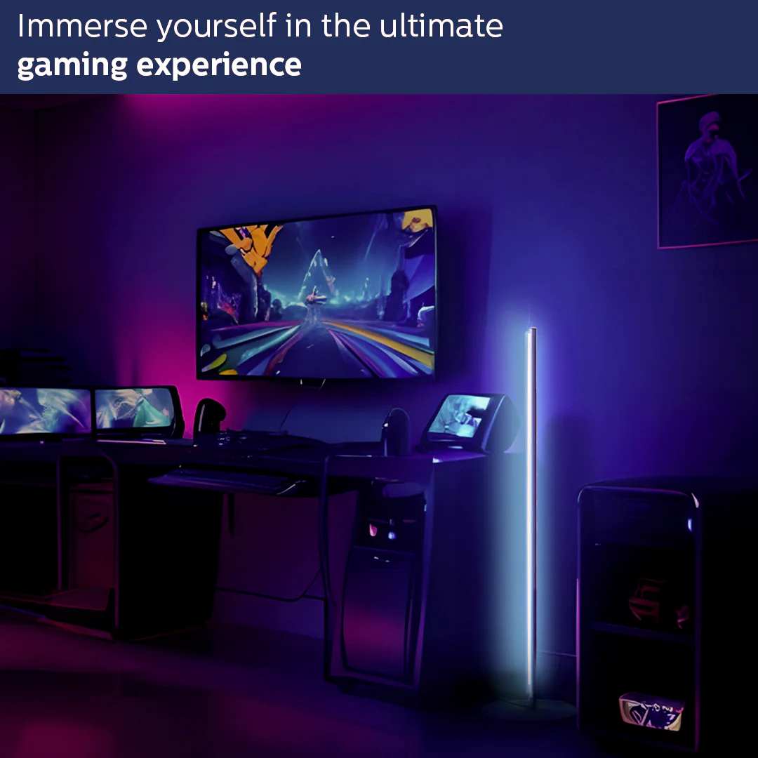Introducing Philips Smart Wi-Fi Wiz connected Floor Lamp, the perfect addition to enhance your ambiance and set the mood in any room. With its sleek and minimalistic design, this floor lamp seamlessly blends into any decor style.