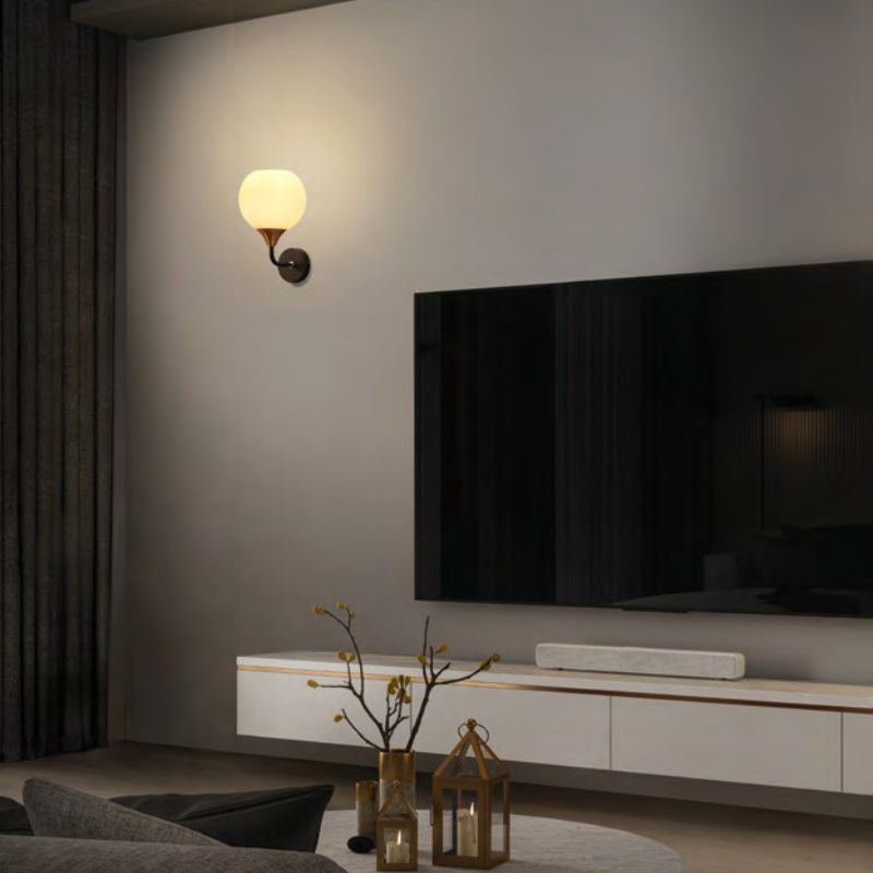 Home Branded Lights Philips Indoor Lights Wall Lamps Single head wall light 800025 Body: Black and Brass; Glass: Frosted white Metal and Glass (ODL-WL 1589 )
