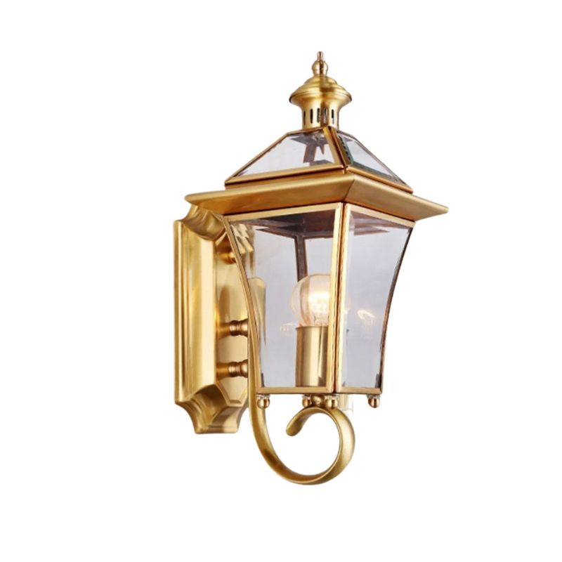 This vintage-style brass outdoor wall lantern brings timeless elegance to any home’s exterior. Its classic lantern design with clear glass panels allows for a warm, welcoming glow that enhances your outdoor spaces. Crafted from high-quality brass, this wall-mounted fixture adds sophistication to entryways, patios, and garden walls. Its traditional design and durable build make it both stylish and functional, providing ambient lighting that withstands the elements.